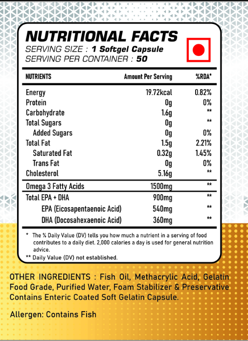Rich in EPA and DHA: Delivers the two most important omega-3 fatty acids for optimal health. Molecularly Distilled: Ensures purity by removing harmful toxins and heavy metals. Sustainably Sourced: Harvested from high-quality, wild-caught fish. Easy to Consume: Available in soft-gel capsules with an enteric coating to prevent fishy aftertaste.